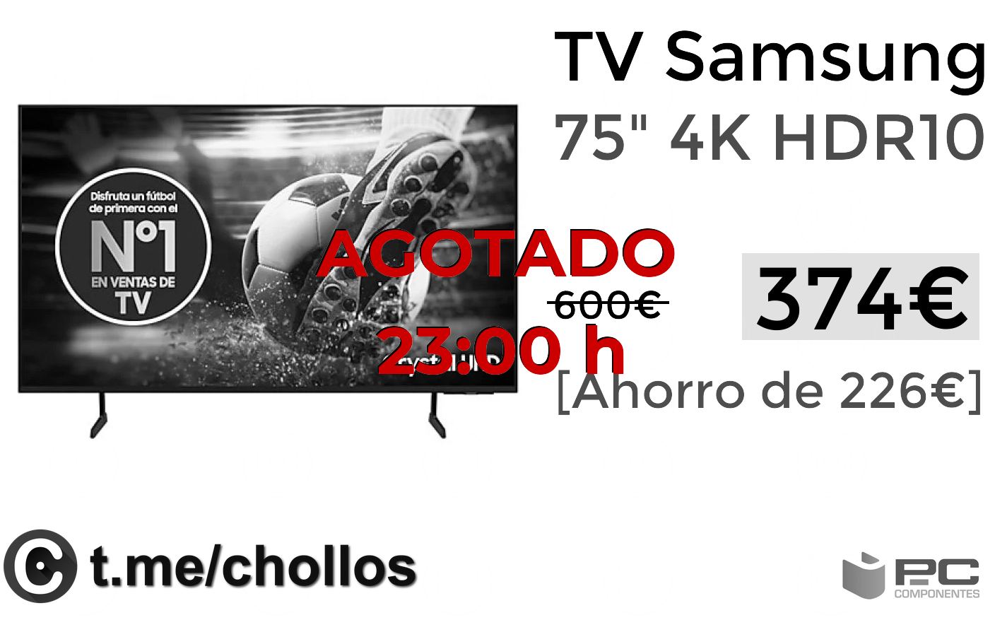 🔹TV Samsung 75" 4K HDR10 solo 374€❗️💥 (PVP: +600€)