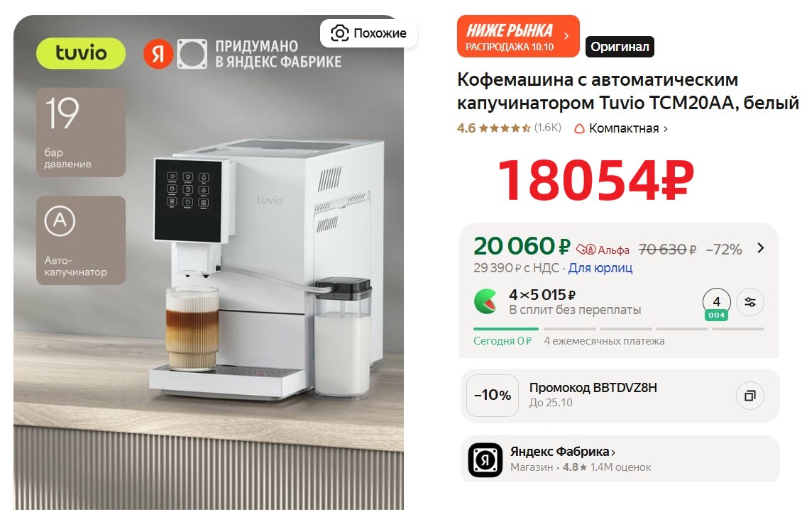 Будет радовать тебя утром вкусным кофе! Кофемашина с автоматическим капучинатором Tuvio TCM20AA за 18054₽ на Яндекс Маркет: https://www.tg-me.com/c/1347209731/108669