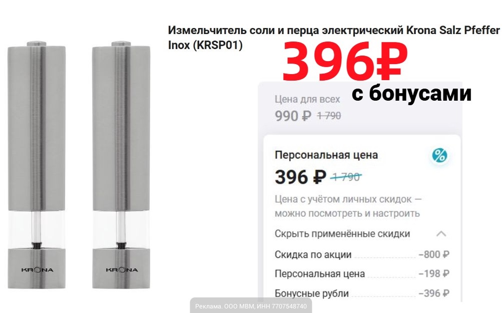 Измельчитель соли и перца электрический Krona Salz Pfeffer Inox, 2 шт в М.Видео за 792₽. Забирай: https://www.tg-me.com/c/1347209731/108503