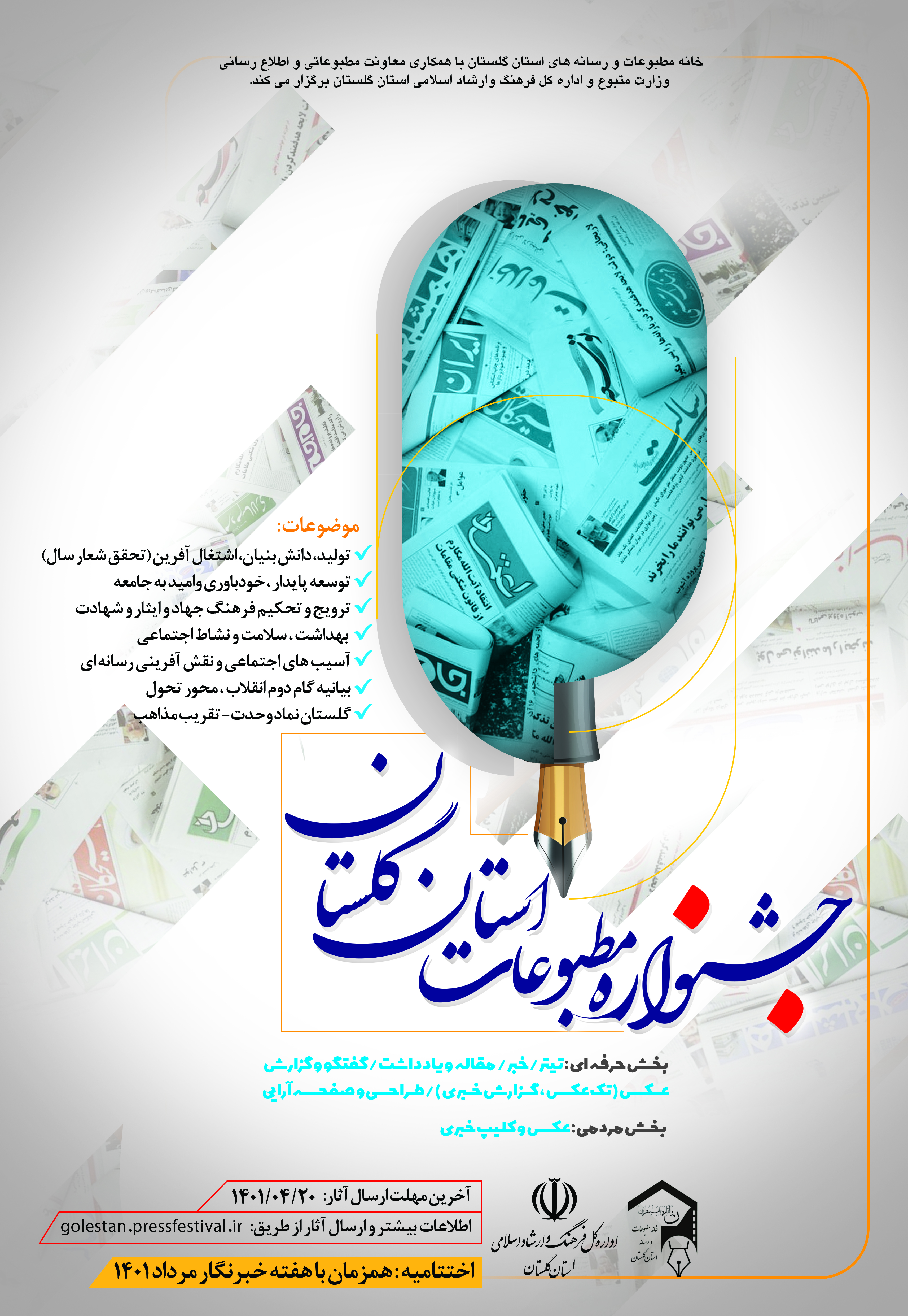 🗞️ تمدید مهلت ارسال آثار در "جشنواره مطبوعات استان گلستان" 🗞️
