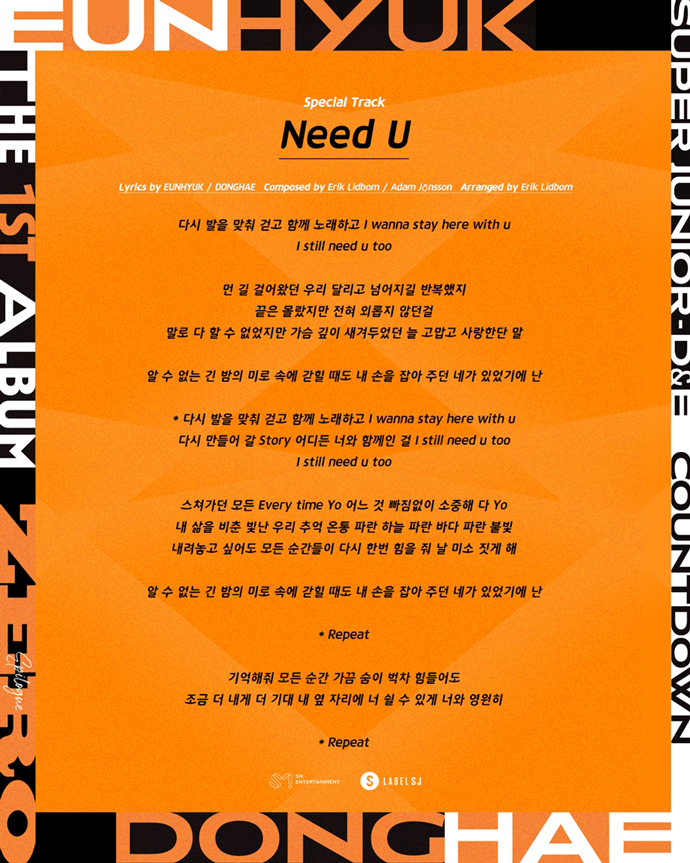 슈퍼주니어-D&E, 정규 1집 에필로그 앨범 스페셜 트랙 'Need U' 리릭 이미지 공개