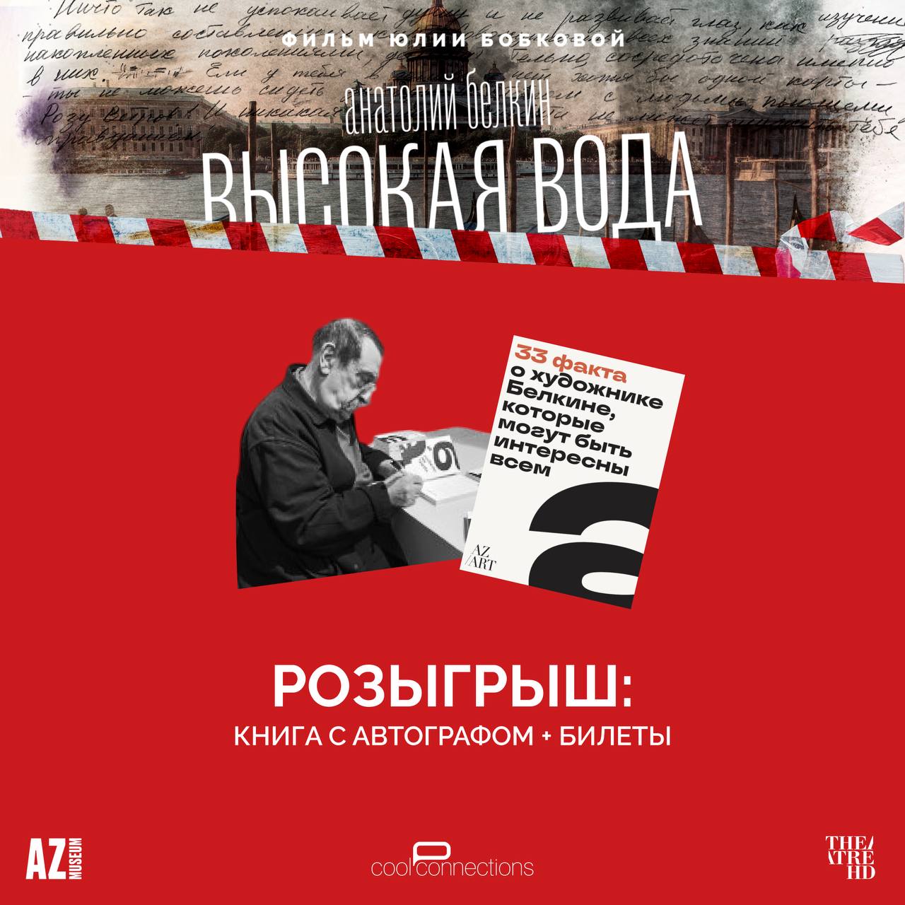 Друзья, в преддверии показов фильма «Анатолий Белкин. Высокая вода» в рамках The Art Film Festival дарим 2 пары билетов на показ 26 октября в Музее «Гараж» и книгу «33 факта о художнике Белкине, которые могут быть интересны всем» c автографом художника!