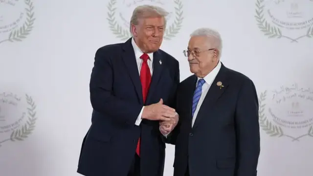 در میان رهبران جهان که امروز پیش از مراسم امضا با دونالد ترامپ دست دادند، محمود عباس، رئیس تشکیلات فلسطینی بود.
