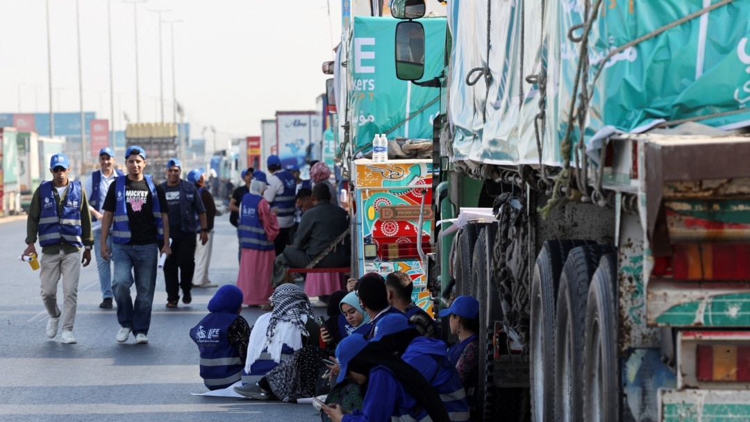 📷 کامیون‌های مصری حامل کمک‌های بشردوستانه در مسیر گذرگاه مرزی رفح برای ورود به غزه، در مصر