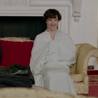 تعادل نداره،نمیتونه بلند شه و بره سمت اتاق جان.تا اینکه یهو جان وارد اتاق میشه.وقتی شرلوک جانو میبینه اروم میگیره و جان با یه لبخندی رو لبش میاد سراغش و میشینه لبه ی تختش.