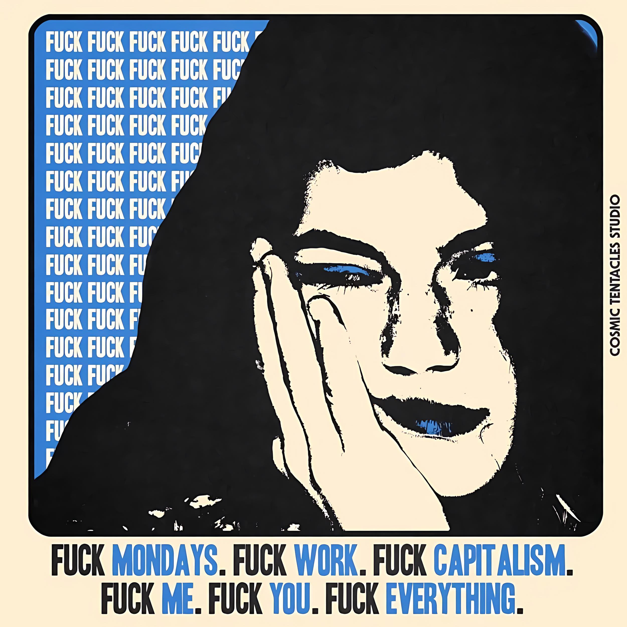 "Fuck Mondays, fuck work, fuck capitalism, fuck me, fuck you, fuck everything" (EN: English)