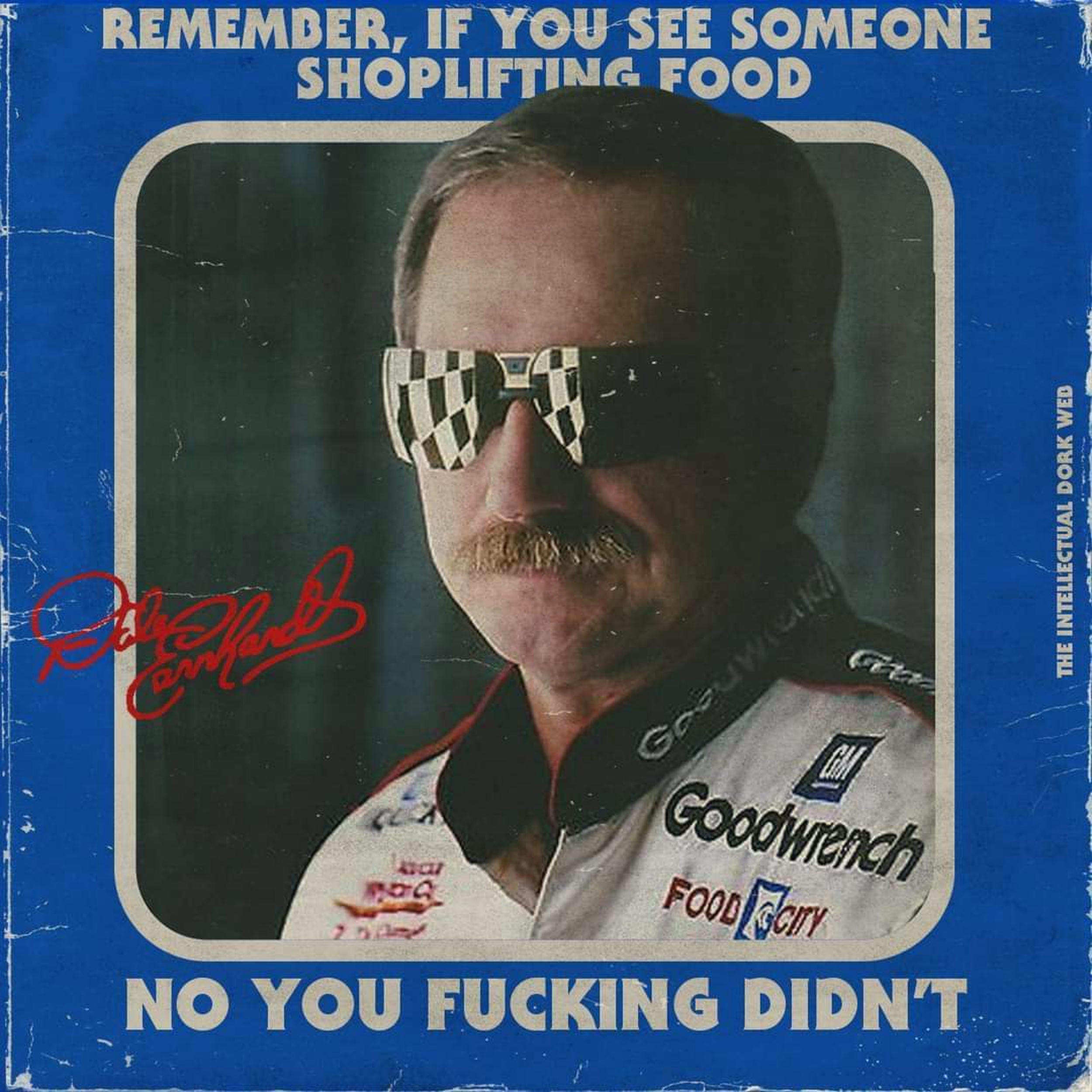 "Remember, if you see someone shoplifting food: no you didn't" (EN: English)