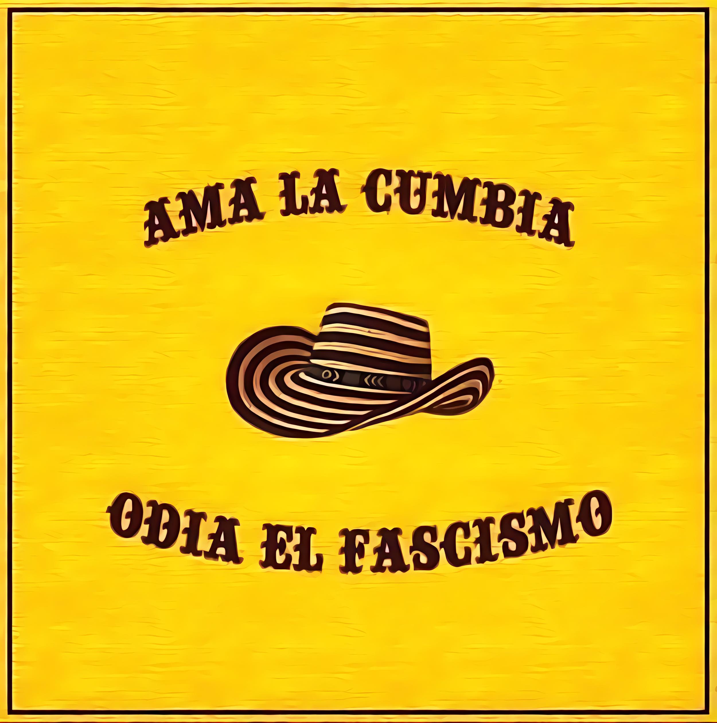 "Ama la cumbia, odia el fascismo" (ES: Español)