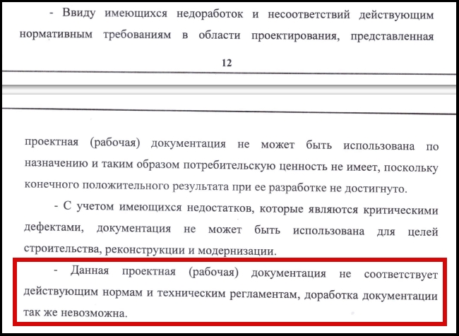 "Данная документация не соответствует нормам и техническим регламентам, доработка документации так же НЕВОЗМОЖНА!"