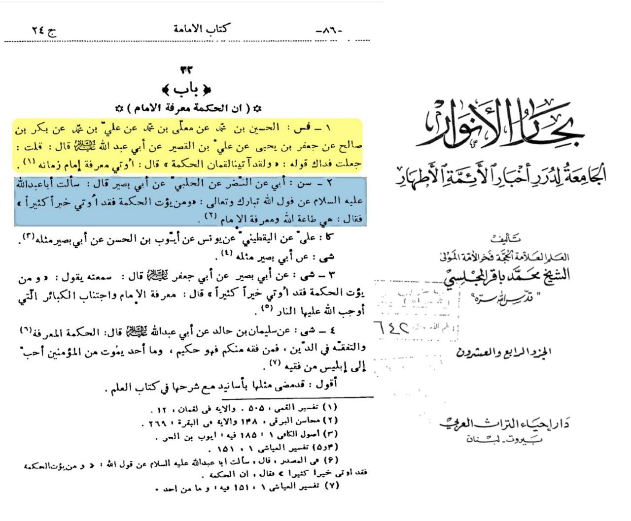 «حکمت ، طاعت خدا و معرفت امام است.»(۲)