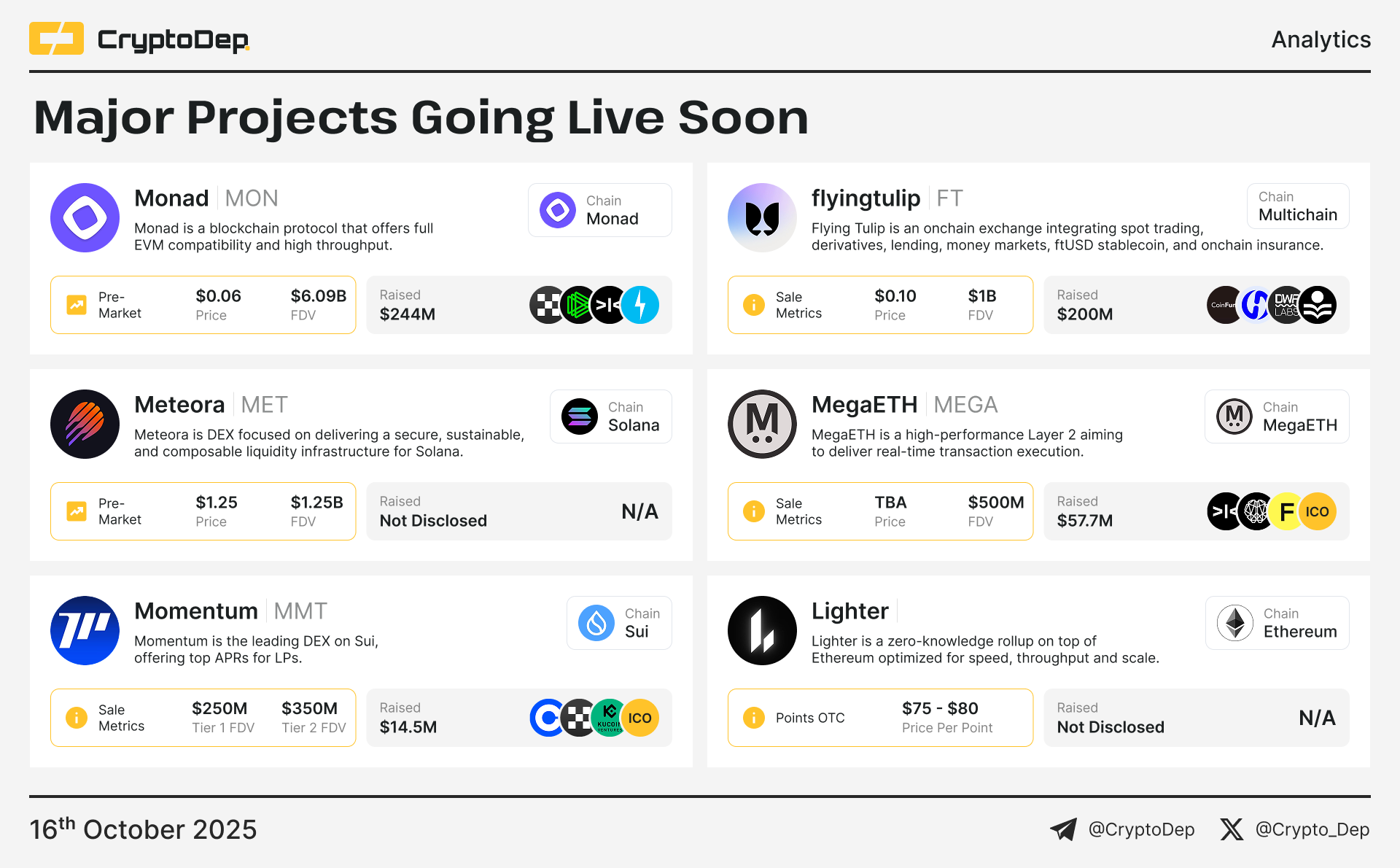 The next wave of major launches is approaching, including Monad, Meteora, and Momentum. Some of these tokens are already trading in pre-market, while others are entering the public sale phase.