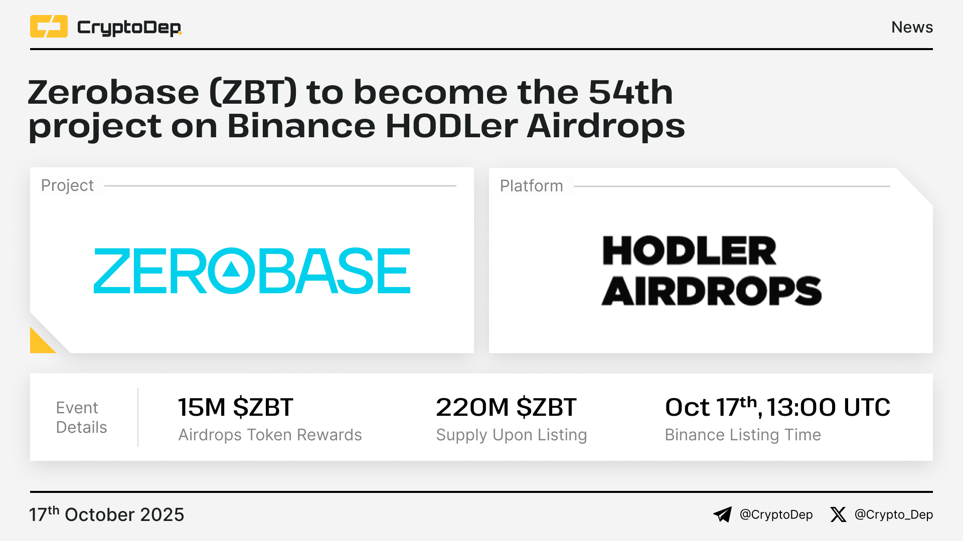 Zerobase (ZBT) to become the 54th project on Binance HODLer Airdrops