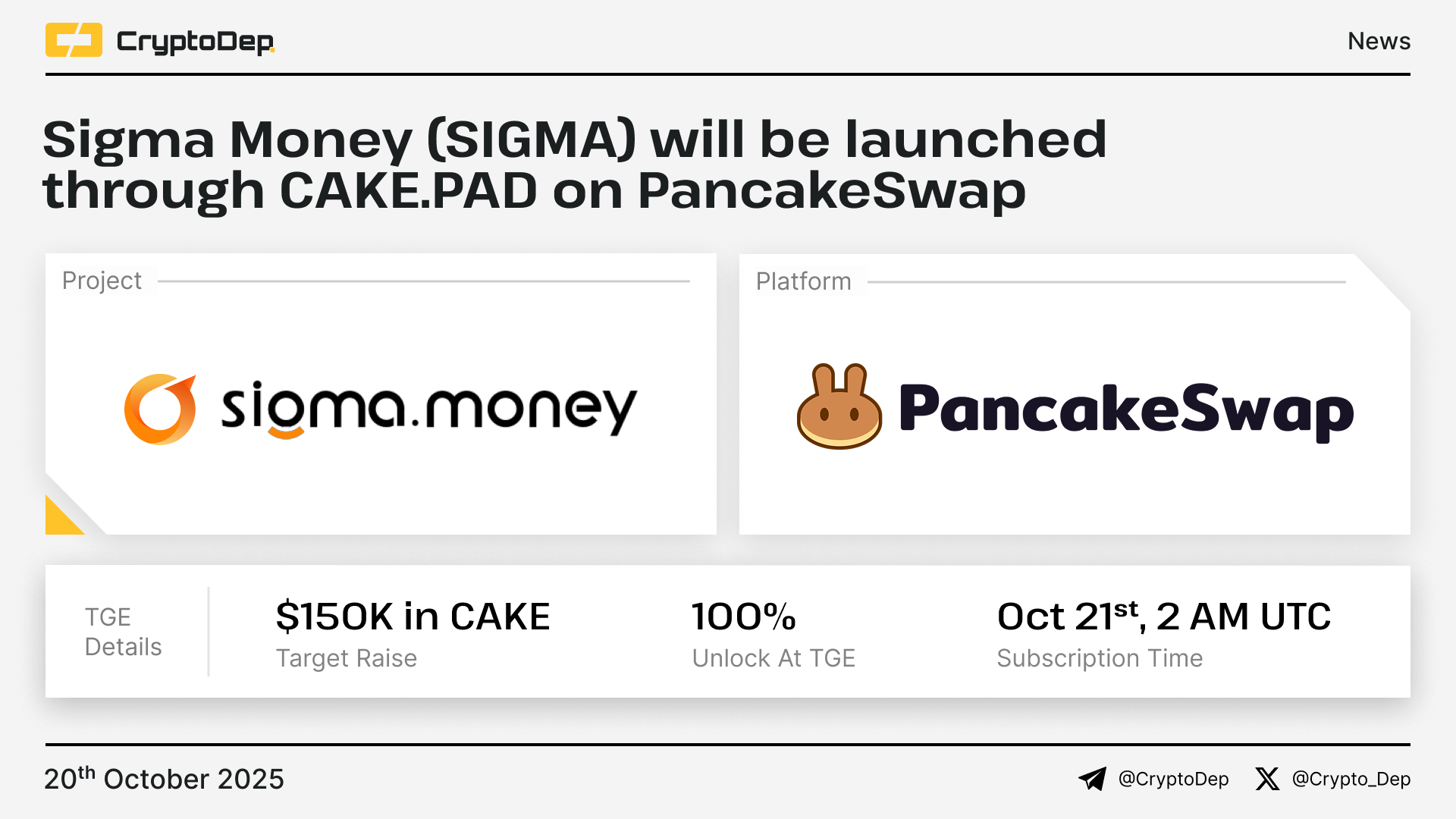 ββSigma Money (SIGMA) will be launched through CAKE.PAD on PancakeSwap