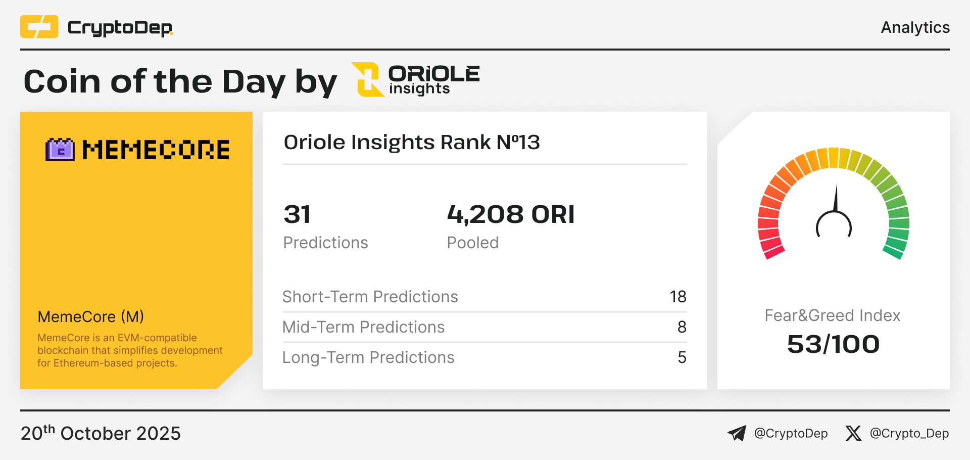 ββCoin of the Day by Market Sentiment - MemeCore (M)