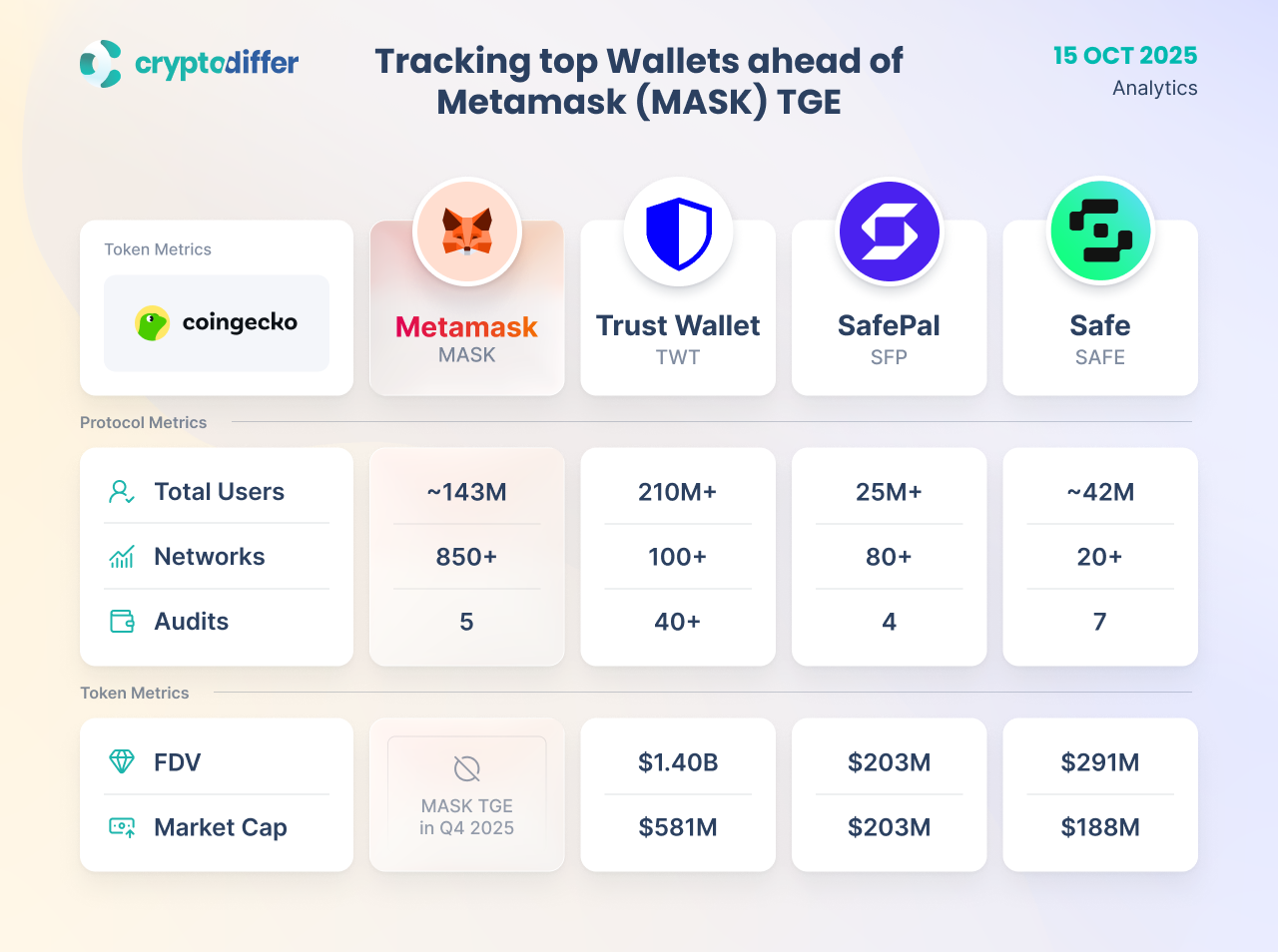 With MASK on the horizon, we benchmark top wallets on non-financial strength. Our board stacks number of users, networks, and audits to see who leads ahead of Metamask token listing.