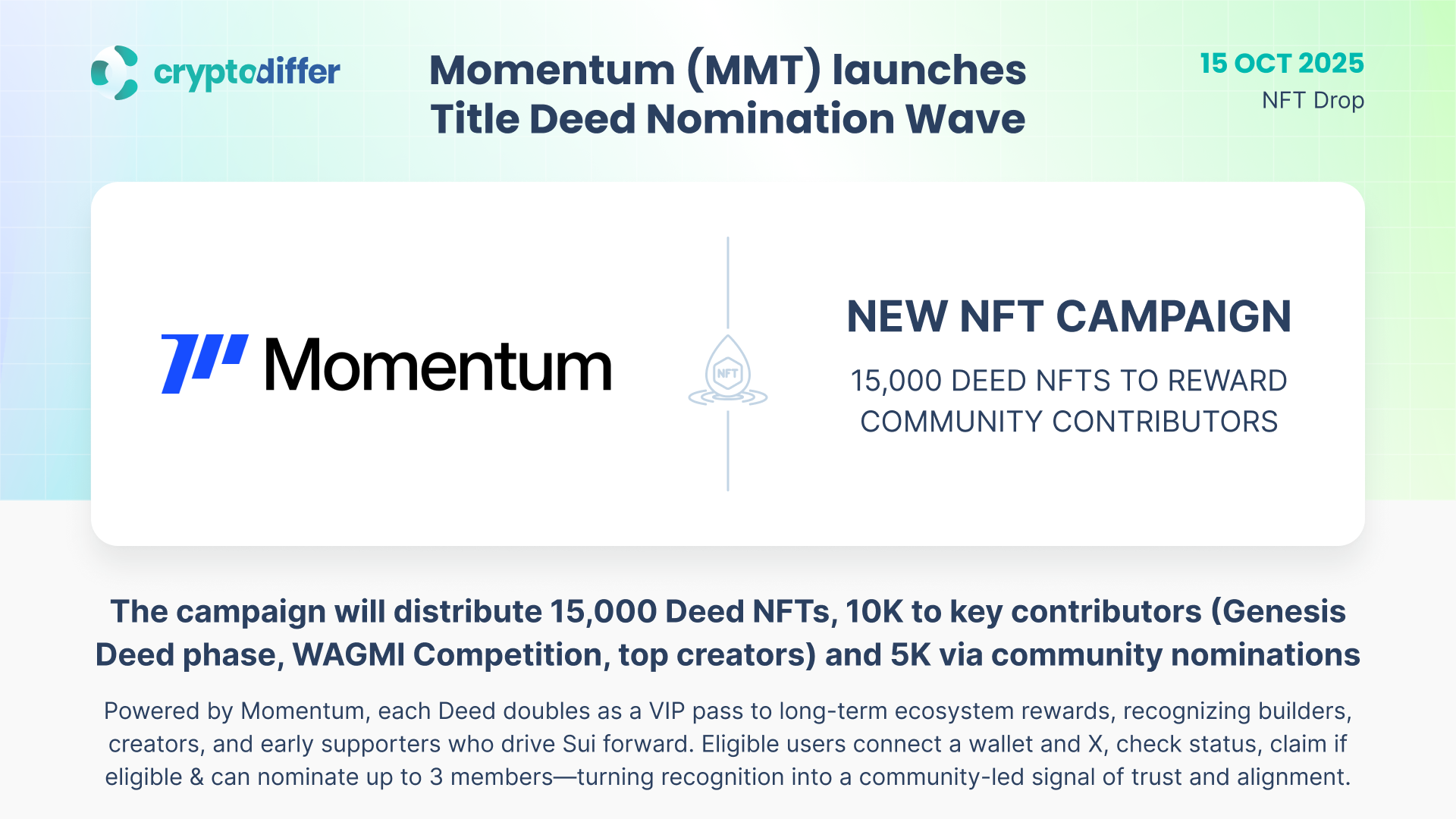 The campaign will distribute 15K Deed NFTs, 10K to key contributors (Genesis Deed phase, WAGMI Competition, top creators) and 5K via community nominations. Powered by Momentum, each Deed doubles as a VIP pass to long-term ecosystem rewards.