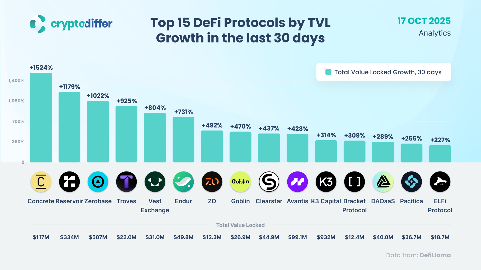 ββTop 15 DeFi Protocols by TVL Growth in the last 30 days