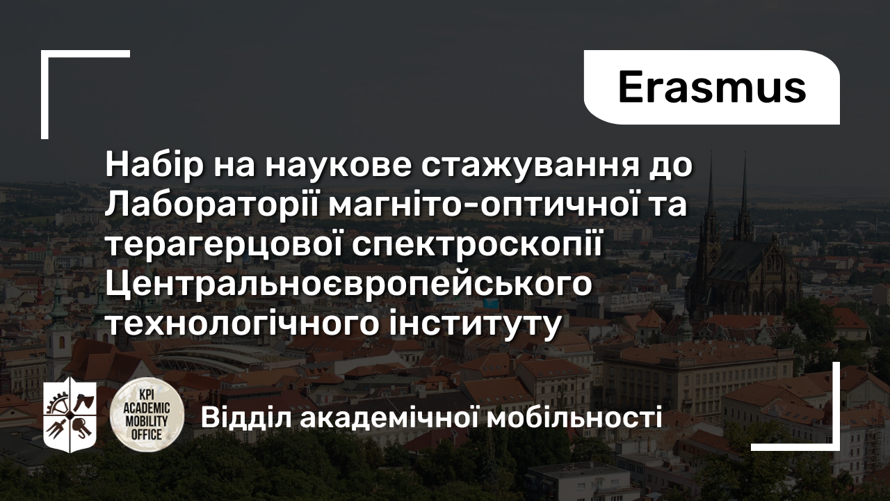 ⚛️ Подовжено набір на наукове стажування до Лабораторії магніто-оптичної та терагерцової спектроскопії Центральноєвропейського технологічного інституту