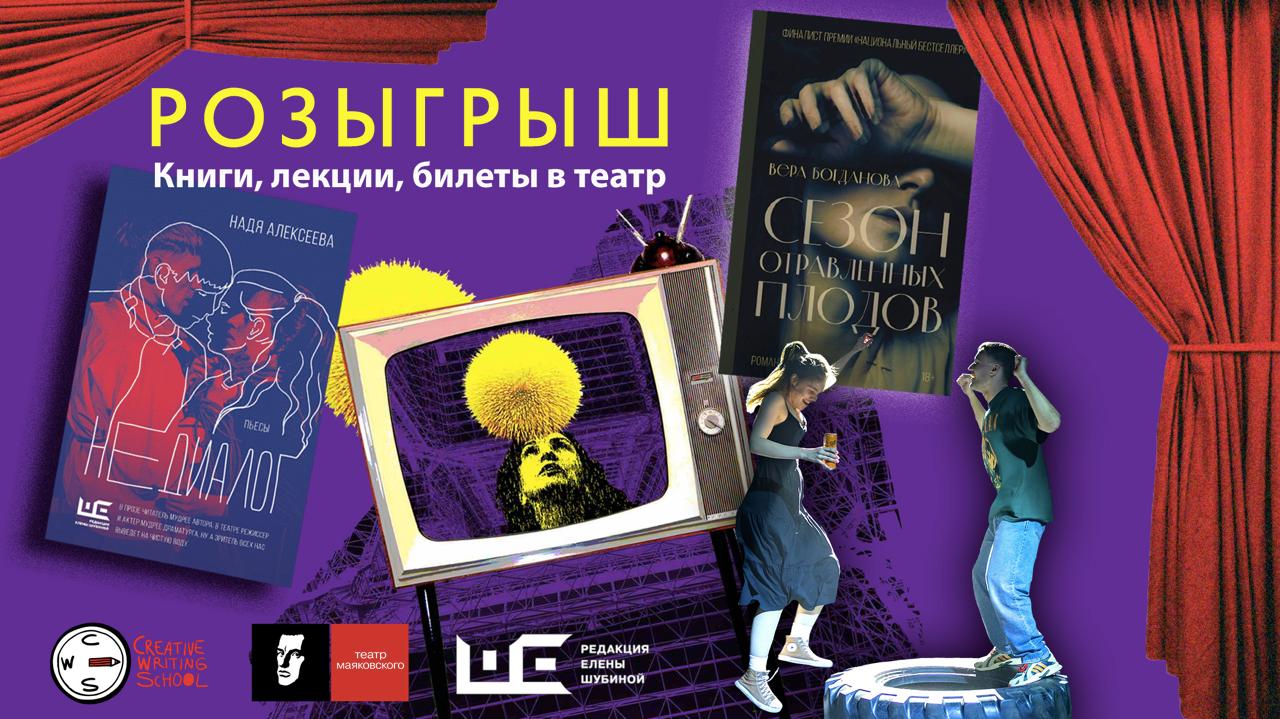 Обращаем внимание: бумажные версии книг отправим по РФ, пригласительные билеты от Театра Маяковского будут действовать на эскиз «Сезон отравленных плодов. Открытая репетиция» 8 октября.