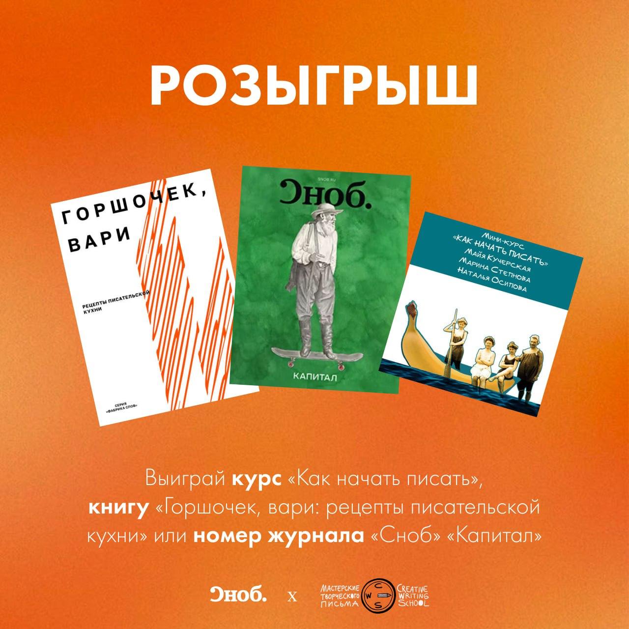 Разыгрываем подарки от Creative Writing School и журнала «Сноб»