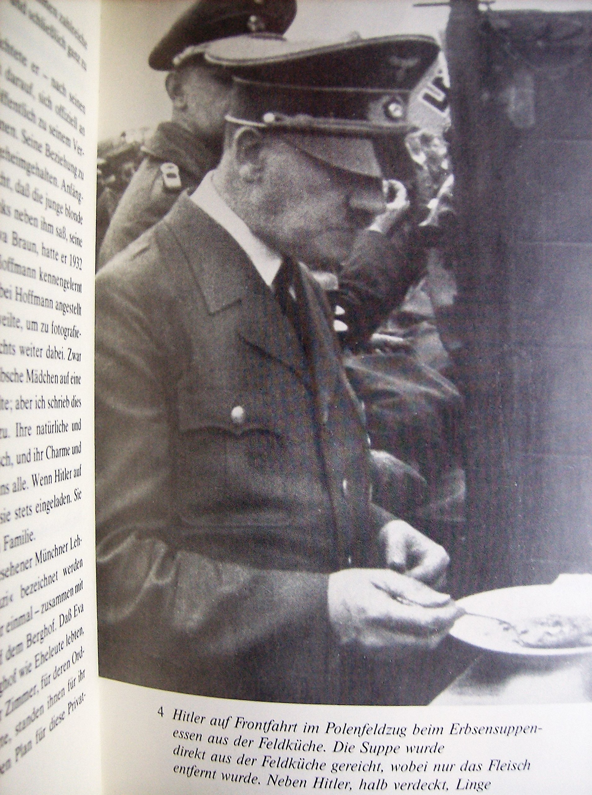 Гитлер вёл себя как будто находился в полевых учениях. Он почти ежедневно отправлялся на фронт на бронированной машине, проезжал через леса и другие небезопасные районы, где польские снайперы оставались в засаде. Однажды, когда мы проезжали через лес у Вислы, мы встретили тела немецкой медицинской группы, перебитой двадцать минут назад. Разгневанный Гитлер пробормотал: «Они заплатят за это!» Даже тогда он не показывал страха. Он разговаривал с рядовыми бойцами и рассказывал им о собственном опыте на передовой в Первой мировой войне. Ему нравилось, когда они смотрели на него с гордостью, полными надежды. В проявлении солидарности он ел с бойцами в полевых кухнях и рекомендовал, чтобы в будущем гауляйтеры последовали его примеру. Во время одной из первых поездок на фронт один из генералов, видимо, недовольный уверенным взглядом Гитлера, заметил, что эта кампания — рискованная авантюра. С угрожающим взором Гитлер ответил: «Для вас это легко. Мы уже прошли авантюры». Однако вечером, когда я был один с ним, он сказал: «Всё должно двигаться быстро, как можно быстрее. Нам нужно поставить врага на колени за самый короткий срок. Тогда никто не будет иметь возможности называть это авантюрой». Он постоянно держал себя в курсе ситуации на Западе. Страх войны на двух фронтах тревожил его больше, чем он хотел признать.