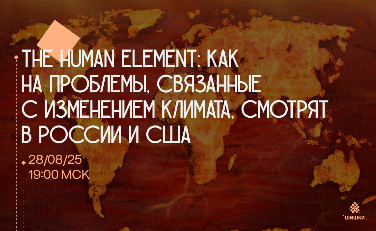 В клубе «Шишки» от медиа «Кедр» смотрят фильм «Человеческий элемент» (The Human Element). 28 августа в 19:00 (Мск) пройдёт дискуссия: как в России и США смотрят на проблемы изменения климата, загрязнения окружающей среды и эпоху антропоцена. Гости встречи - эколог из России и ведущий подкаста «Забытые в Америке» студии Толк Дэн Сторев.