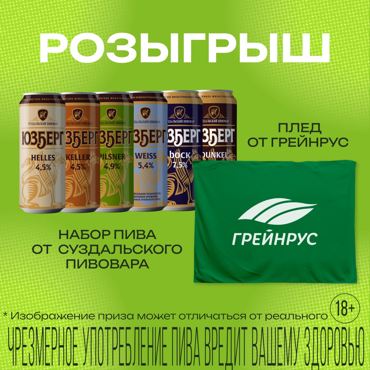 Разыгрываем 5 подарков от «Суздальского пивовара» и «Грейнрус»! Каждый из пяти победителей получит набор пива «Юзберг» и фирменный плед от компании «Грейнрус». Условия участия максимально простые: 1. Быть подписанным на канал «Суздальский пивовар • Юзберг»…