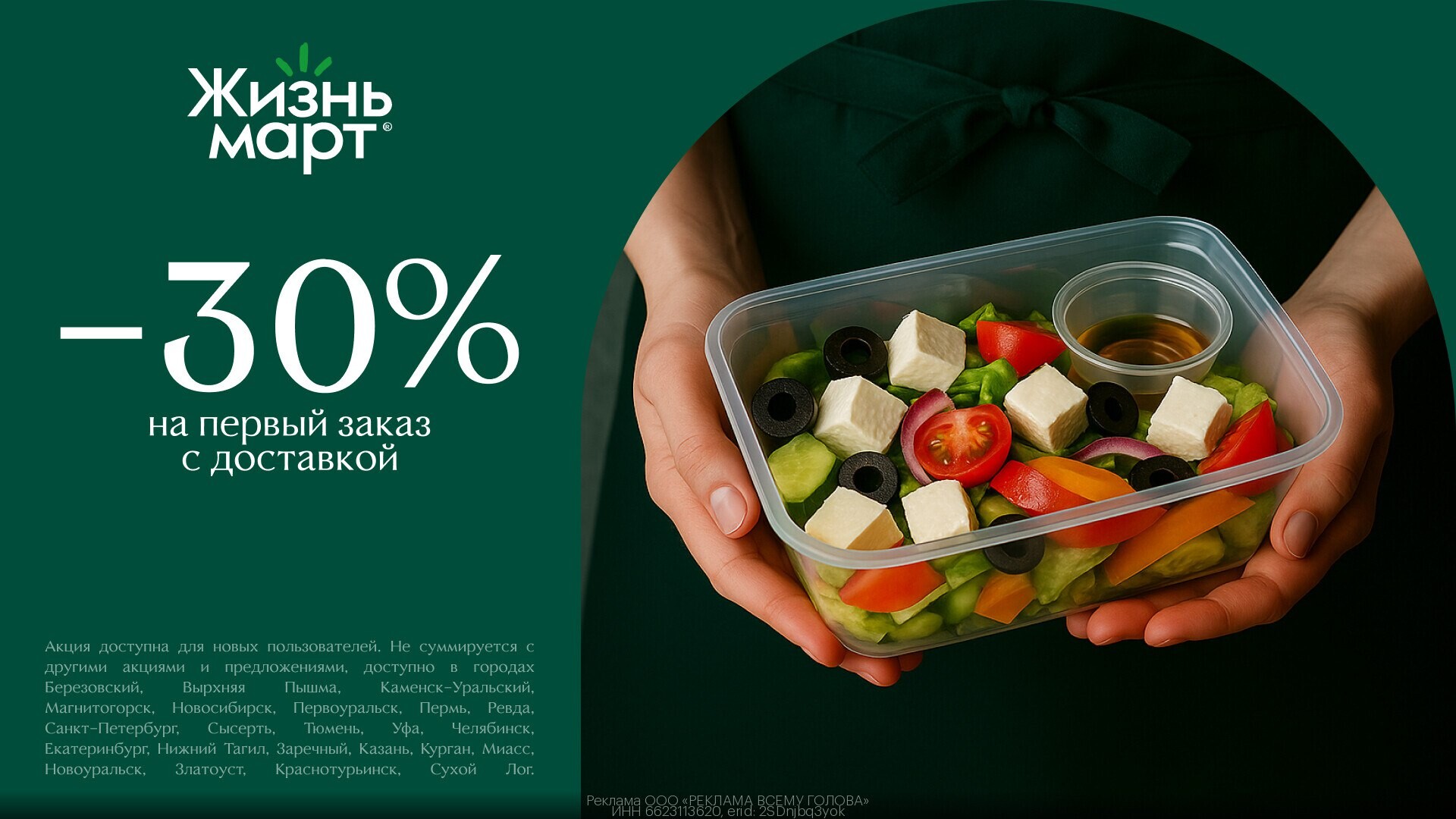 ➡️ Получи скидку -30% на первый заказ с доставкой. Выбирайте свежие продукты и готовые блюда в Жизньмарт.