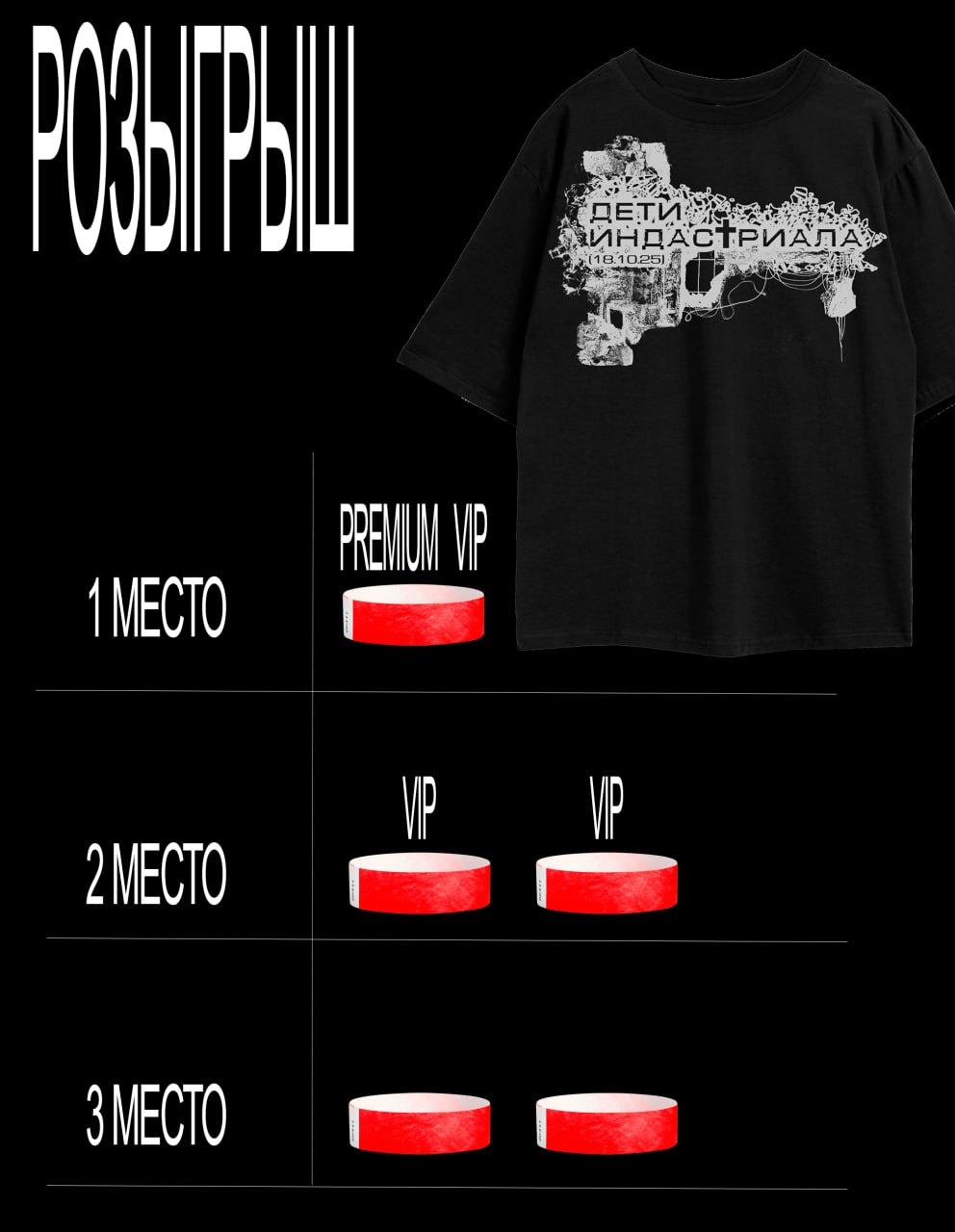 1 место: ФУТБОЛКА by ПОДПОЛЬЕ "ДЕТИ ИНДАСТРИАЛА" + PREMIUM VIP билет