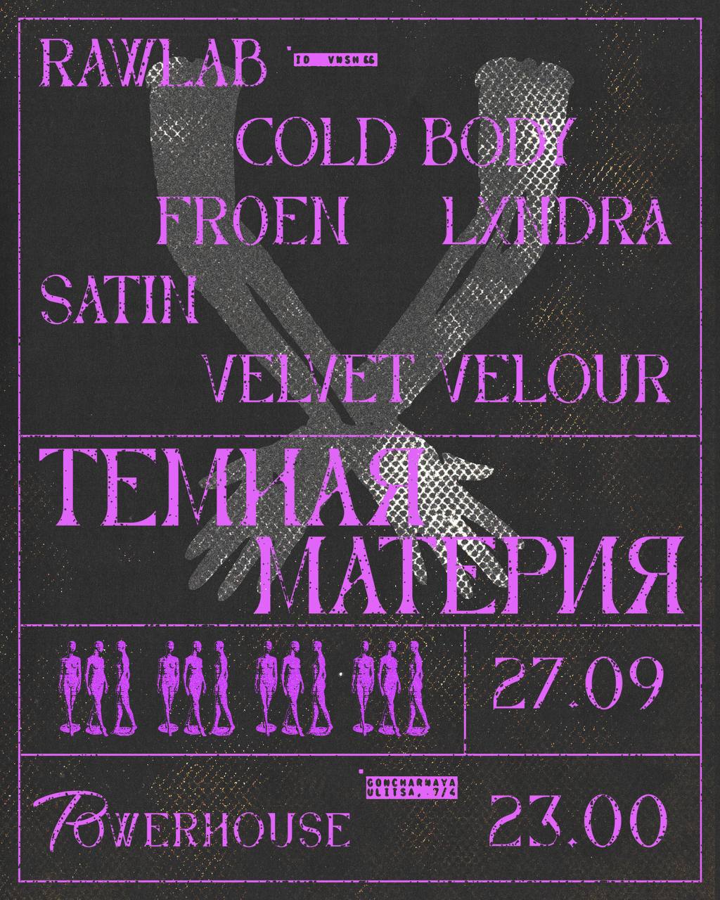 На линии — готическая Satin с хорошо узнаваемым саундом и Velvet Velour с селекцией, очерчивающей границы звука и восприятия. Вишенка на торте — холодный и бьющий под кожу b2b Cold Body и rawlab