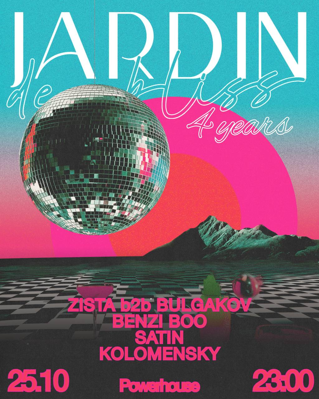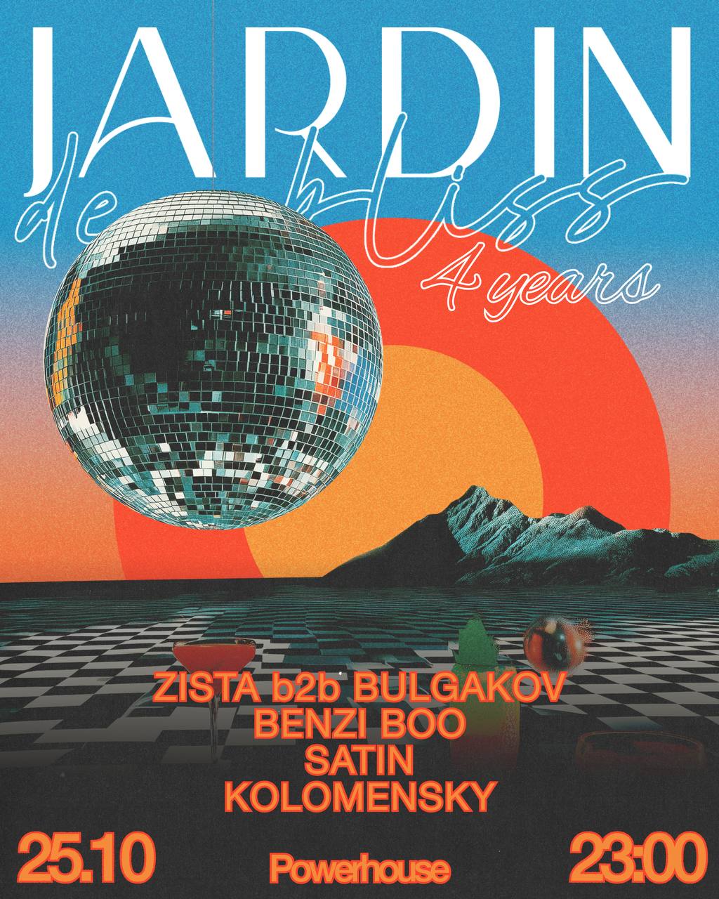 Музыкальному саду блаженств JARDIN DE BLISS исполняется четыре года. За это время он стал пространством, где звук раскрывается во всём своём спектре — от мягких мелодий до плотных слоёв басса и перкуссий, от чувственного итало до бодрого хардгрува, от текучего эйсида до электро, пробуждающего тело.
