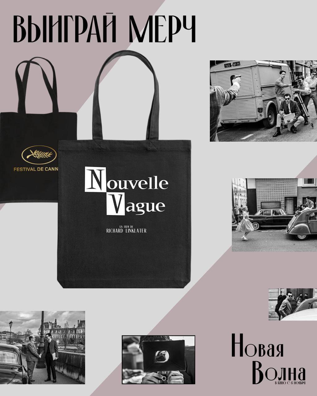 А мы предлагаем вам попытать удачу: двум победителям розыгрыша достанется по паре билетов на спецпоказ и один из шоперов — либо с логотипом фильма, либо родом с Каннского кинофестиваля, где прошла премьера «Новой волны».