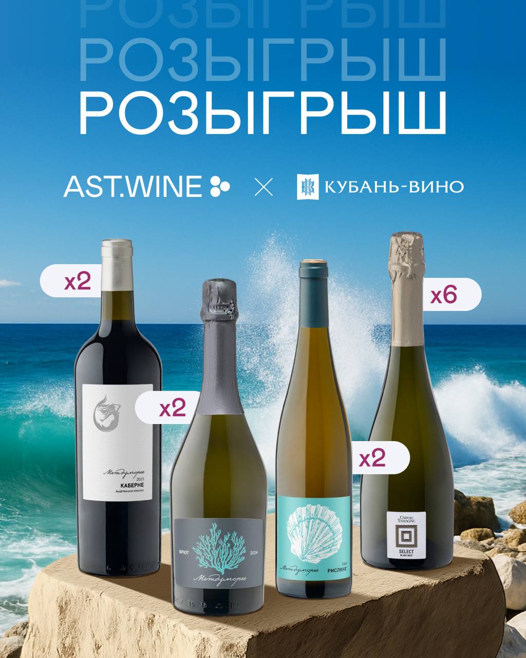 У вас есть шанс выиграть ящик вин «Междуморье», эксклюзивно созданных в партнёрстве с винодельней «Кубань-Вино» для AST.WINE. А также ящик игристого Chateau Tamagne Select Blanc Brut!
