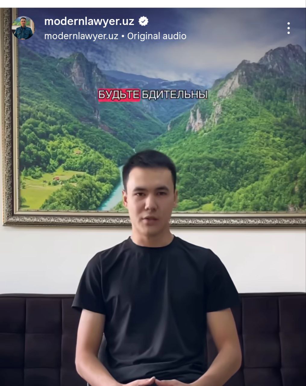 И вот как раз про знание законов страны, в которой ты живёшь и путешествуешь: хочу поддержать сотрудника правоохранительных органов Лазизжона Сайдазимова, который по собственной инициативе завёл Инстаграм Modernlawyer и записывает на русском языке рилсы, где объясняет как работают разные законы и действуют разные статьи Уголовного и Административного Кодексов.