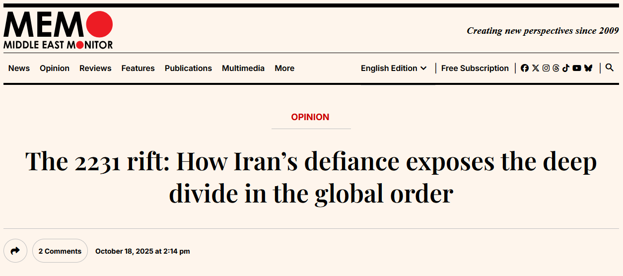 🔹 ۲۶ مهر ۱۴۰۴ | میدل‌ایست‌مانیتور: