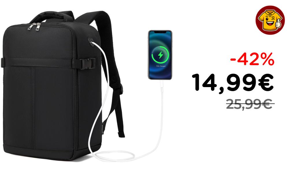 🎒 KONO Zaino Bagaglio a Mano 40x16x25 cm, Nero