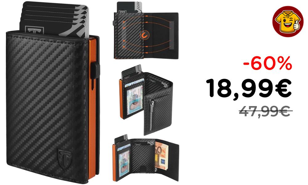 💳 TEEHON Portafoglio Uomo Slim RFID Fibra di Carbonio Nero Orange