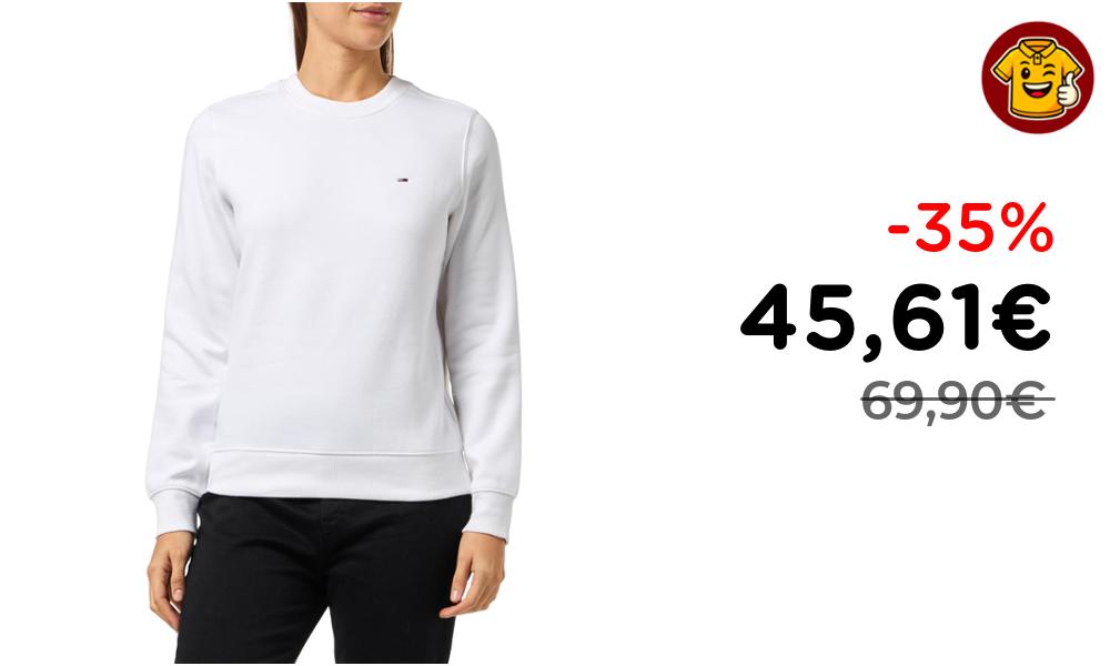 👕 Tommy Jeans Tjw Reg S Flag Crew Felpa Donna Bianco