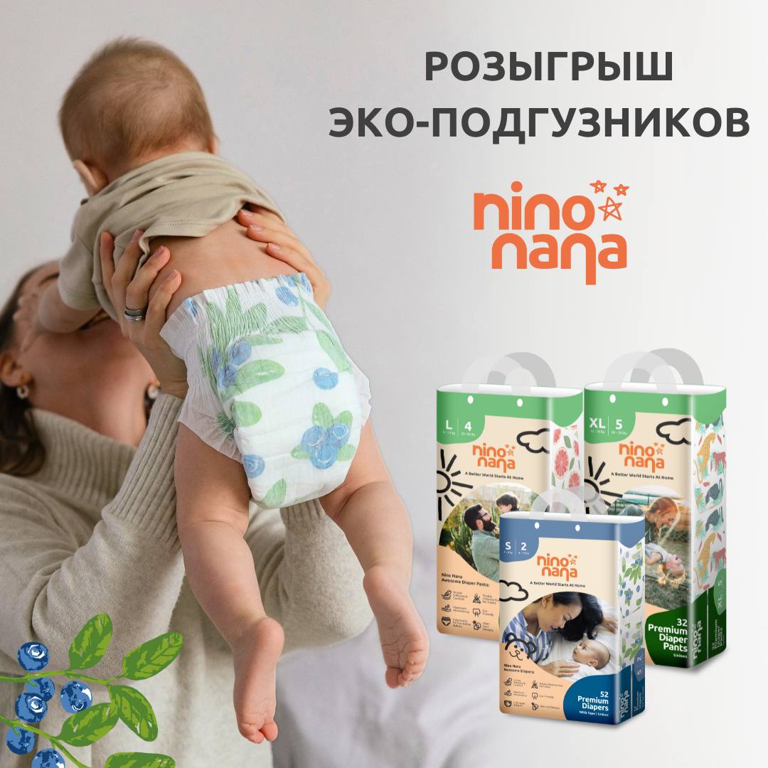 Дарим месячный набор стильных эко-подгузников Nino Nana (3 пачки, размер и дизайн на выбор победителя)