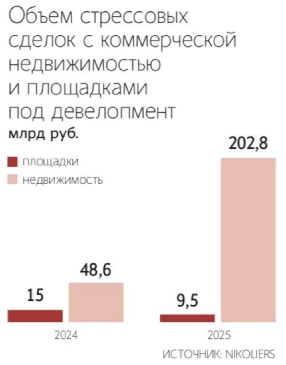 Аналитики фиксируют: объем стрессовых сделок с коммерческой недвижимостью и площадками под девелопмент полетел вкосмос вверх. Оцените данные: