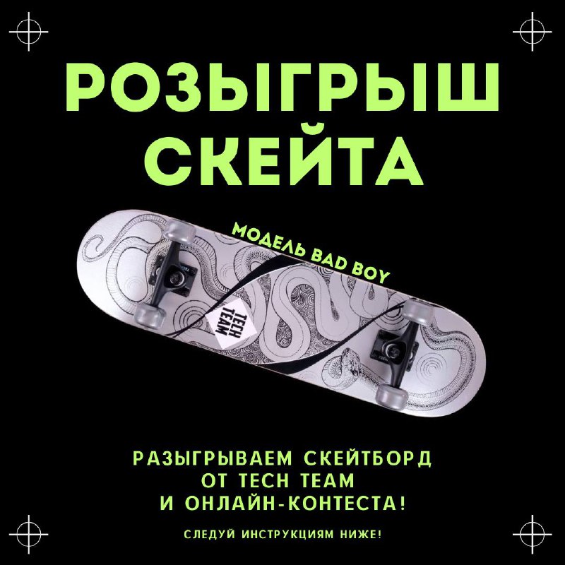 Онлайн-контест pinned «Мечтаешь о новом скейте? Мы исполняем мечты! ⚡️ Совместно с #TechTeam проводим розыгрыш скейта для новичков Bad Boy Условия просты: Подпишись на канал Онлайн-контеста и сообщество Tech Team в ВК После нажми на кнопку «Участвовать», сделай репост в свой…»