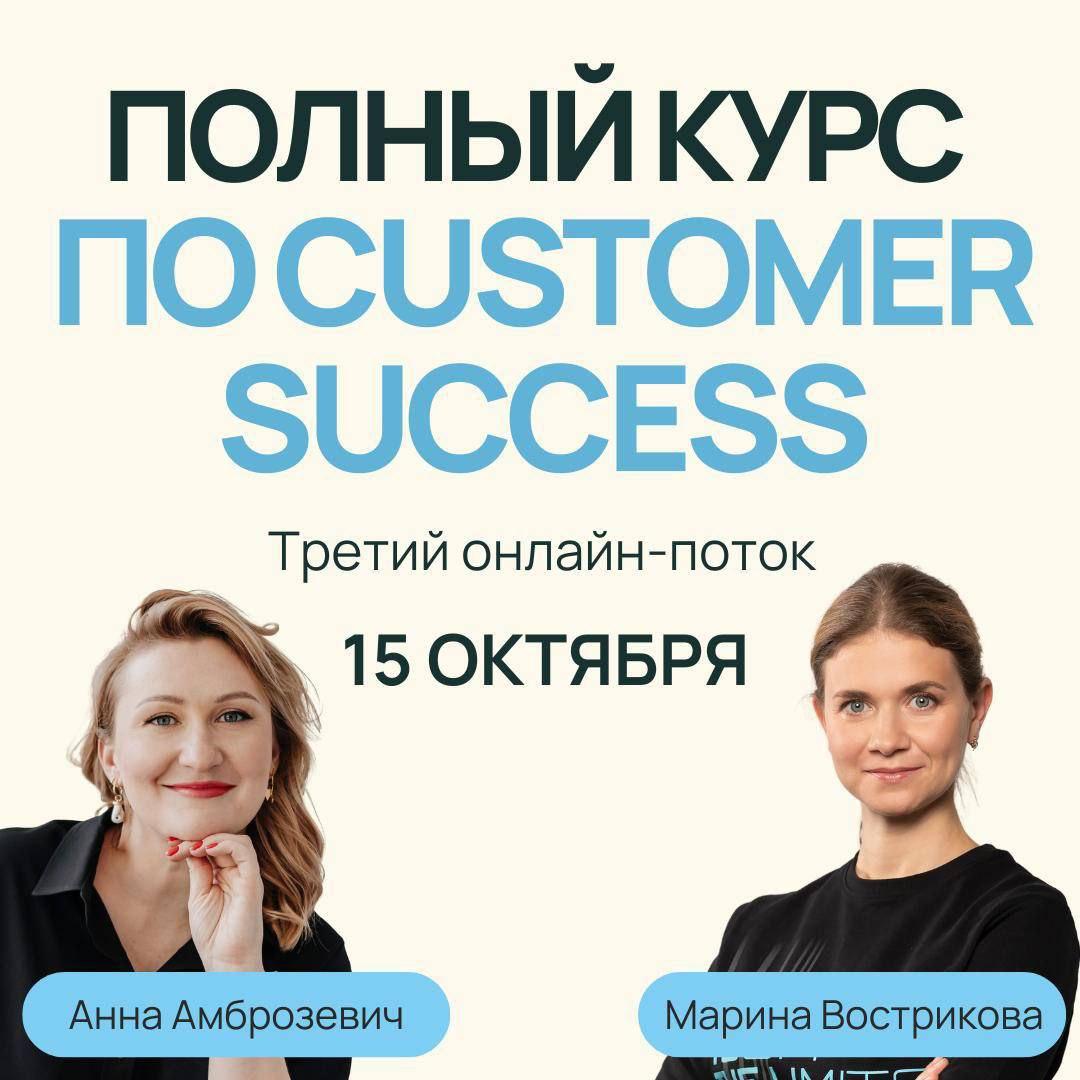 Поэтому от души рекомендую курс по Customer Success, который проводит Марина. Открыт набор на третий поток, старт 15 октября 2025 года.