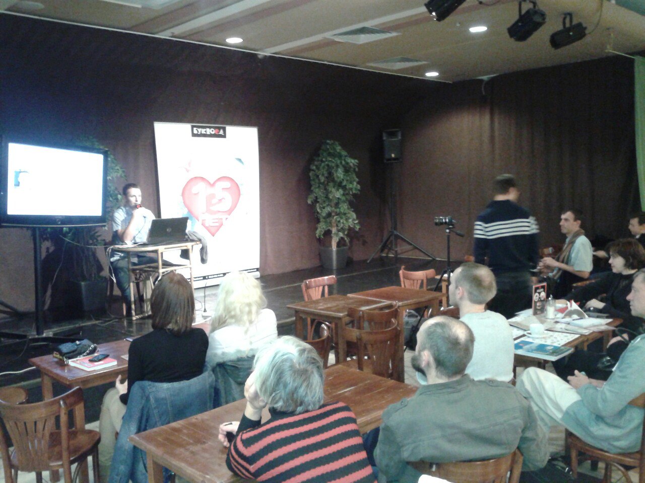 На фотографии - октябрь 2015 года, рассказываю про дистанционное управление на площадке "Буквоеда", в Питере.