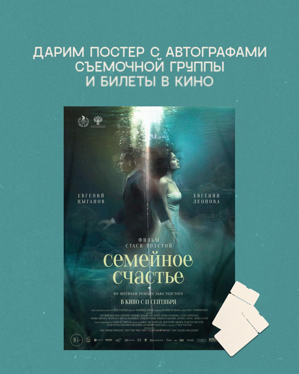 К выходу в прокат драмы «Семейное счастье» подарим два подписанных постера и билеты на фильм в кино 🤍