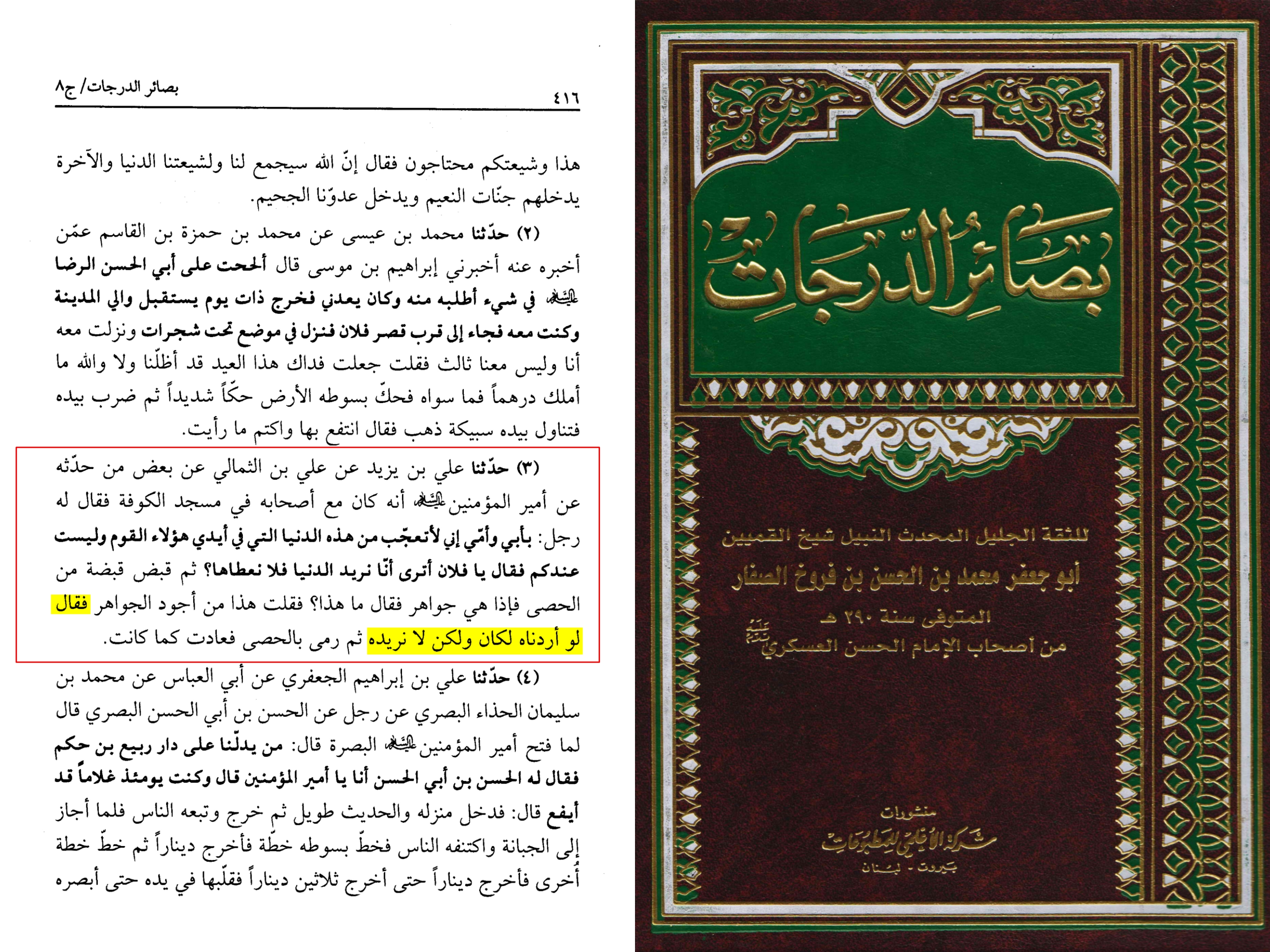 بصائر الدرجات صفحه ۴۱۶ [ اسکن روایت ]