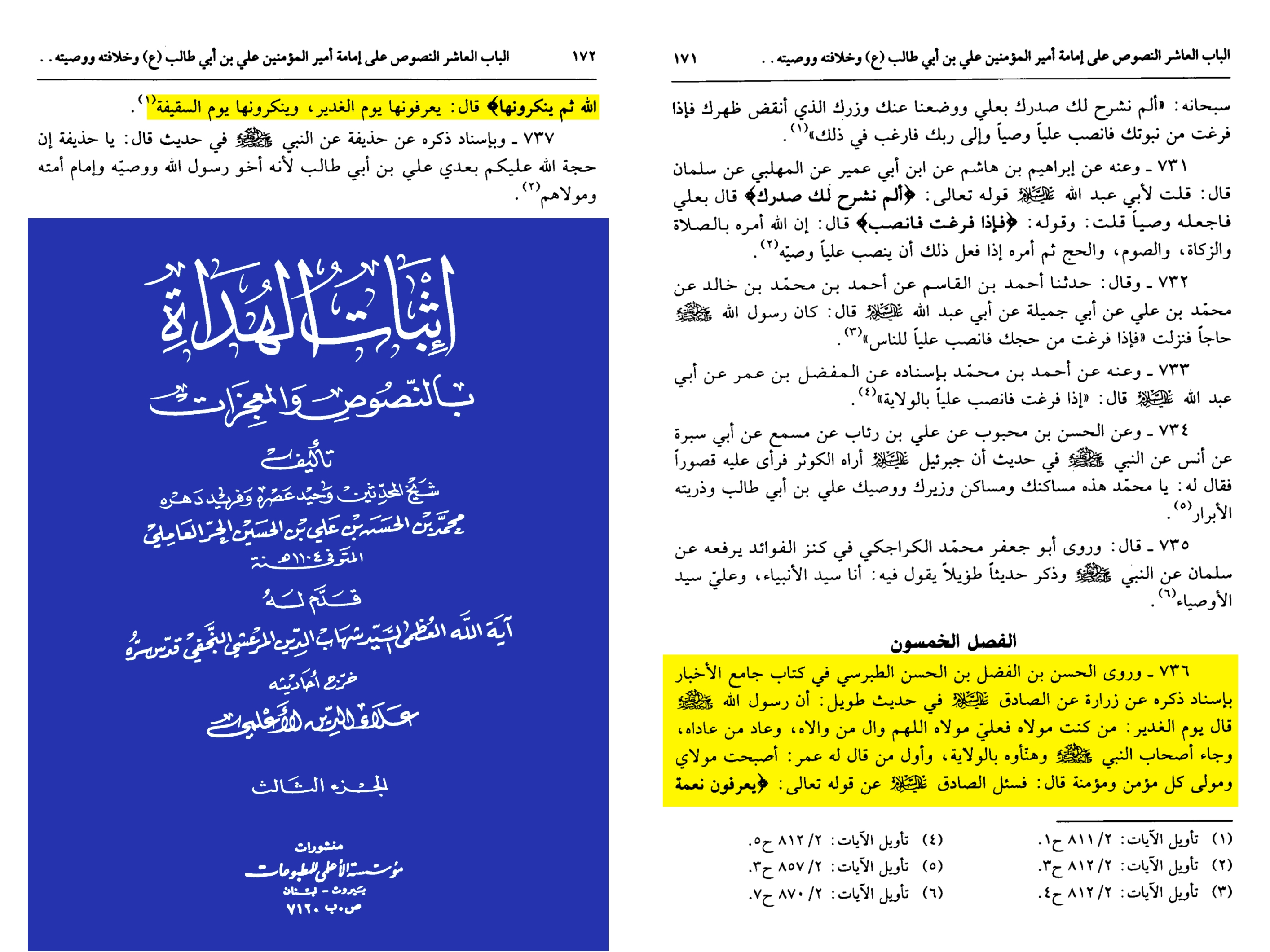 إثبات الهداة جلد ۳ صفحه ۱۷۱ [ اسکن روایت ]