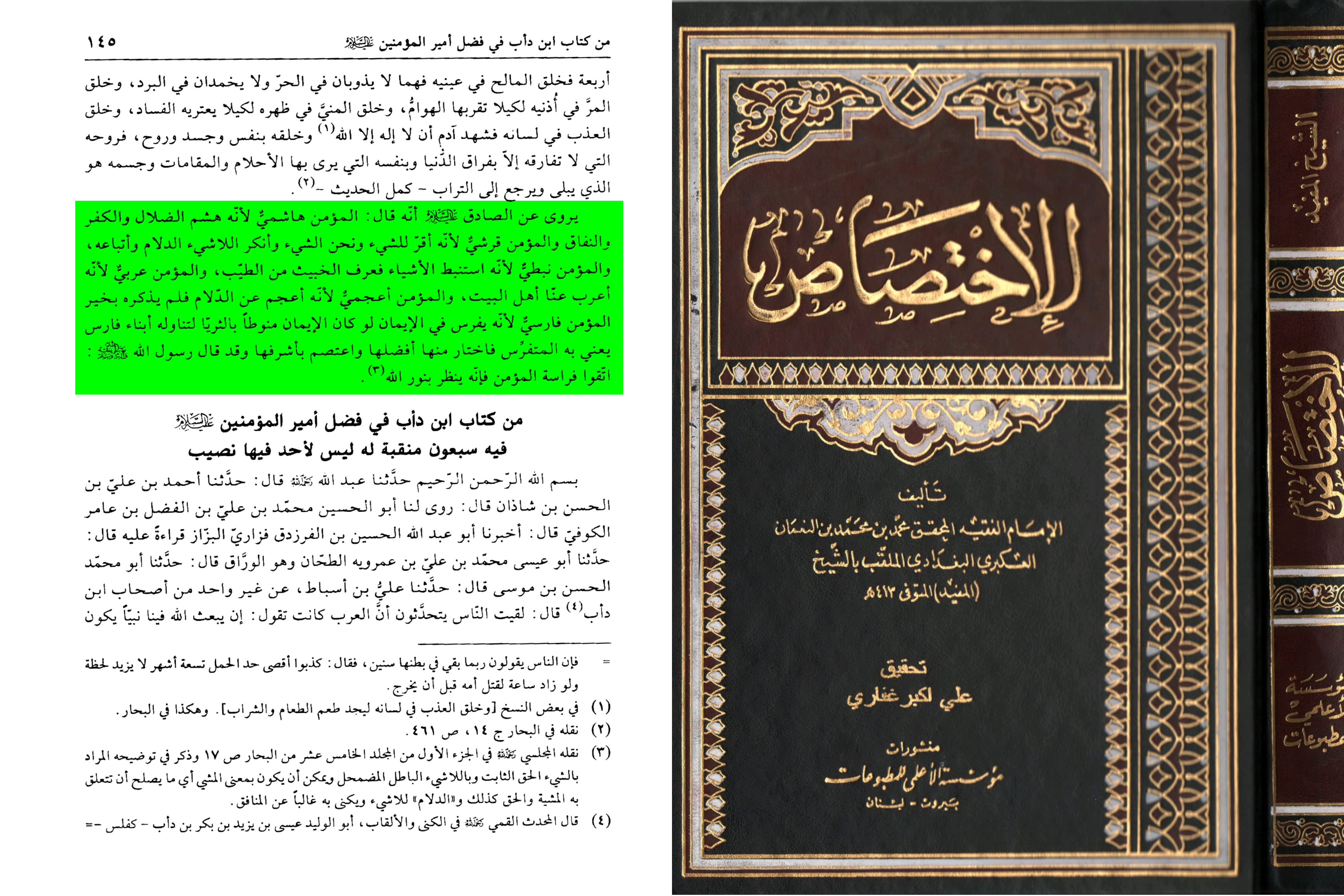 امام صادق صلوات الله علیه فرمودند : مومن هاشمی است ، چون گمراهی را و کفر و نفاق را درهم شکسته است؛ مومن قریشی است، زیرا اعتراف کرده به شی ء و ماییم شی ء و لا شی ء را منکر شده است، که دلام و پیروان او هستند؛ مومن نبطی است، زیرا هر چیز را بررسی کرده و پلید آن را از پاکش تشخیص داده است؛ مومن عربی است، زیرا از ما سخن گفته و ما را آشکار کرده است؛ مومن اعجمی است، زیرا از دلام دم بسته و از او به نیکی یاد نکرده است؛ مومن فارسی است، زیرا در هر نامی جستجو دارد، و اگر ایمان از ستاره ثریا آویخته باشد، فارسیان به آن دست پیدا میکنند. منظور از فارس ؛ متفرّس است، که جستجو کردند و از آن برتر و شریف ترش را برگزیدند و پناه خود ساختند. رسول خدا صلّی اللَّه علیه وآله فرمودند : بپرهیزید از فراست و دریافتِ مومن، چرا که او با نور خدا می نگرد.
